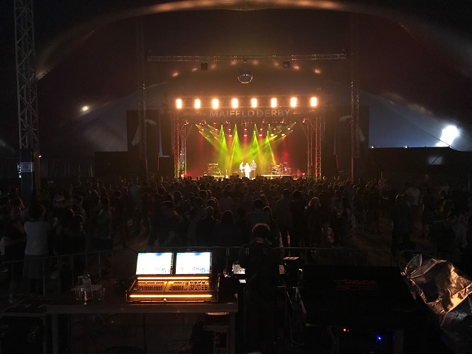 Der weiße Achtmaster mit seinen blauen, beflaggten Zeltspitzen ist von der A6 aus gut zu sehen und gilt vielen Festivalgängern als Vorbote auf die beginnende Festival- und Open Air Saison. Das imposante Zelt ist seit der Erstausgabe des Maifeld Derbys kontinuierlich gewachsen und zeugt vom stetigen Erfolg des Nischen- und Liebhaberfestivals, das in der Vergangenheit Headliner wie The National, Moderat, James Blake oder in diesem Jahr The Streets nach Mannheim geholt hat.